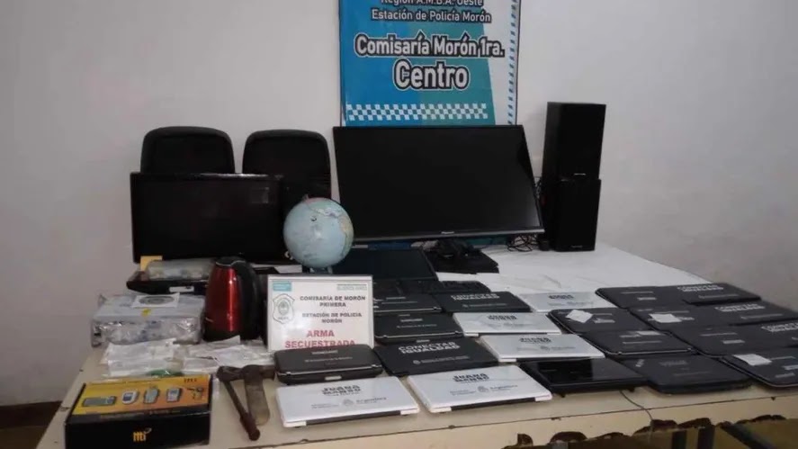 Los investigadores secuestraron en poder de los detenidos una Playstation 4 con dos joysticks, 22 laptops entregadas por el Estado nacional para los estudiantes, un televisor smart, un CPU, cuatro parlantes, un proyector, tres monitores y varios teclados, detallaron los voceros.